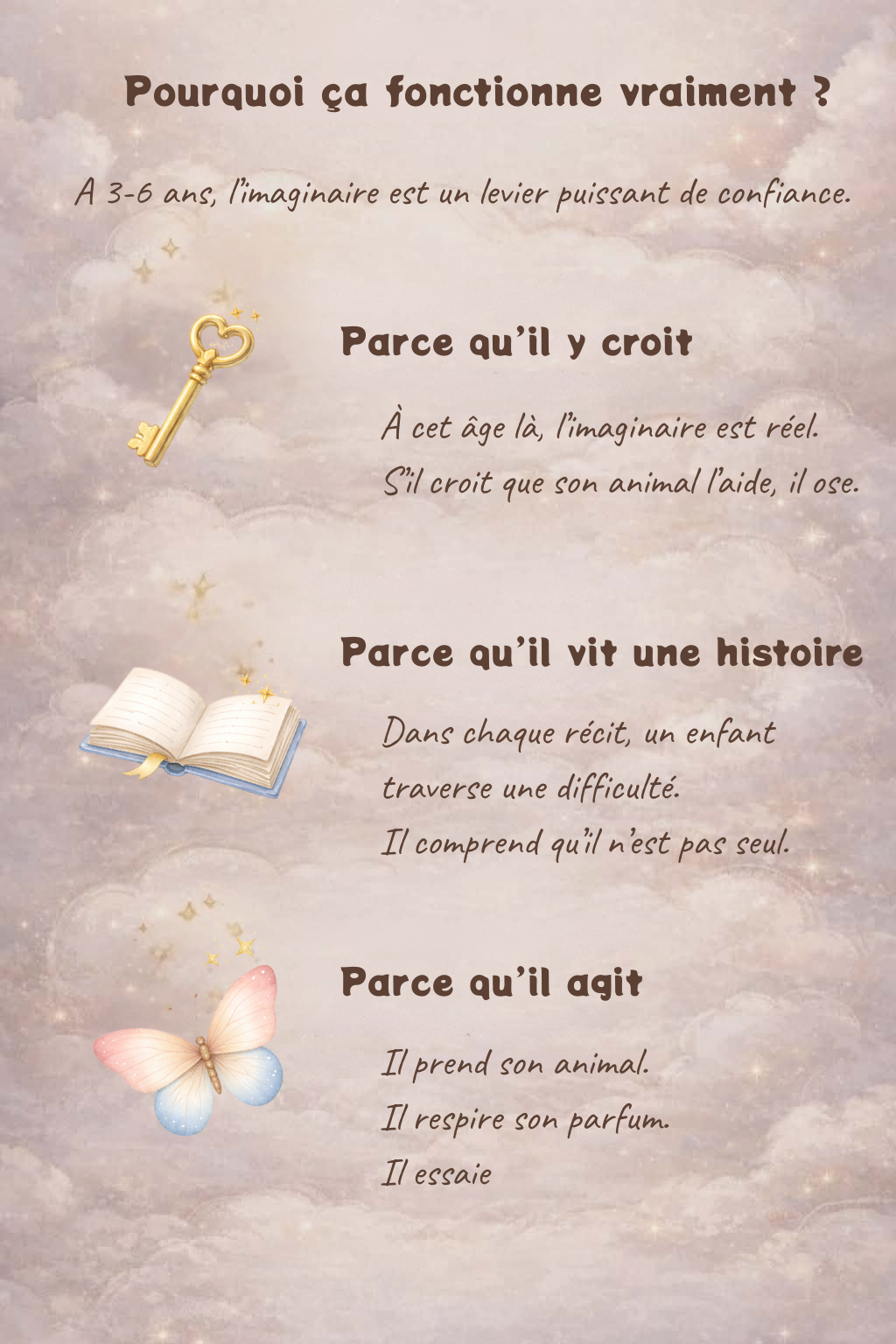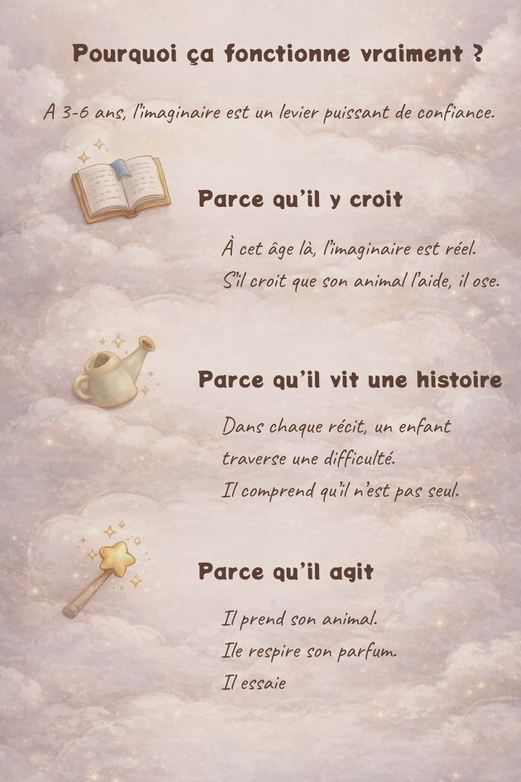 Chaque animal incarne une force dont votre enfant à parfois besoin : oser, patienter, croire en lui, se calmer, imaginer.